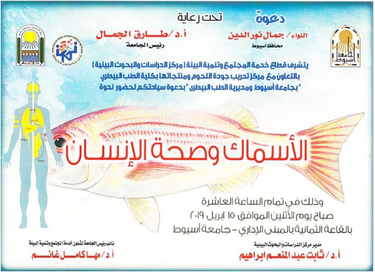 ندوة بعنوان الأسماك وصحة الإنسان 8 أبريل 2019 بمناسبة شم النسيم يعقد مركز الجامعة للبحوث البيئية الاشتراك مع مركز تدريب جودة اللحوم بكلية الطب البيطري ندوة بعنوان الأسماك وصحة الإنسان وذلك يوم الاثنين الموافق 15 ابريل يحاضر فيها ا.د.حسين يوسف و ا.د.احمد عبد الهادى
