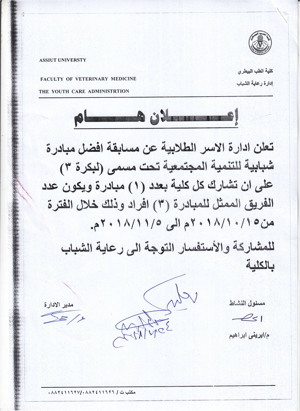 مسابقة افضل مبادرة شبابية للتنمية المجتمعية 22 أكتوبر 2018 مسابقة افضل مبادرة شبابية للتنمية المجتمعية