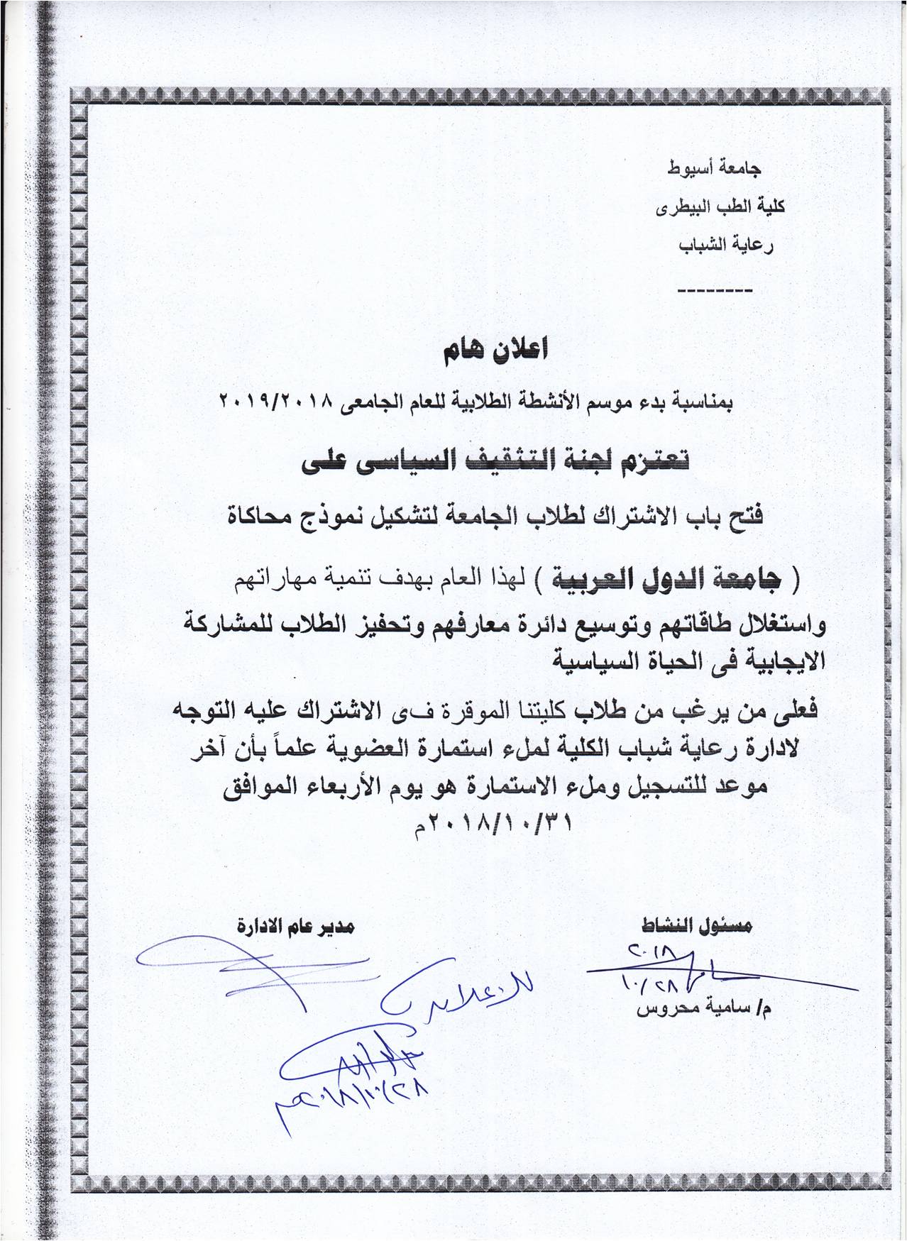 هل لديك سؤال ؟(088) 2352334 - 2411600.vet_med_dean@aun.edu.eg