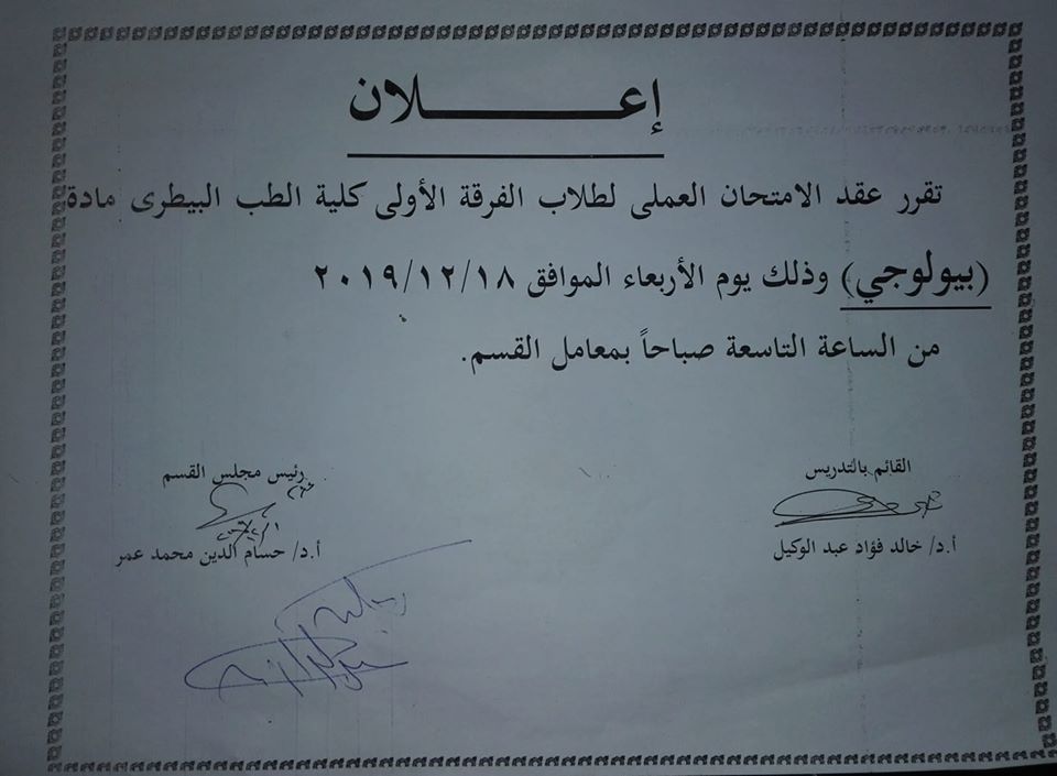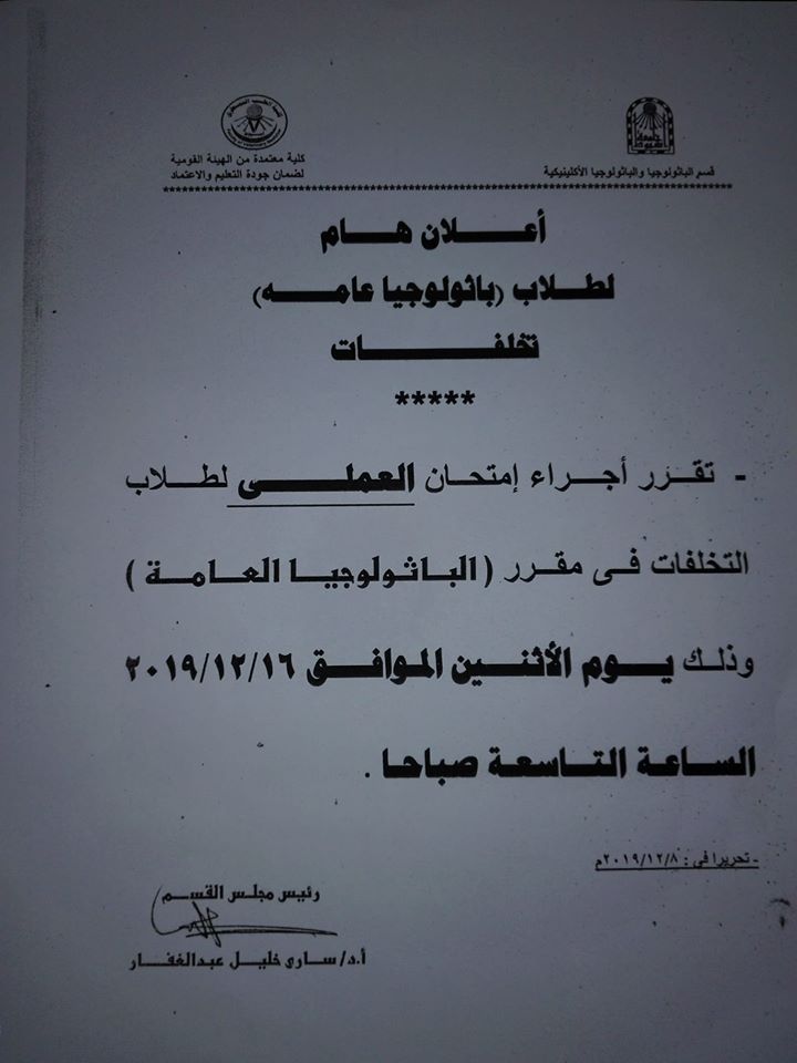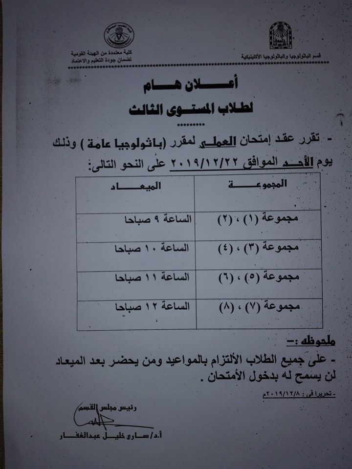 بخصوص محاضرة امراض الدواجن البكتيرية والمقرر ان يلقيها السيد أ.د. رجب البلال