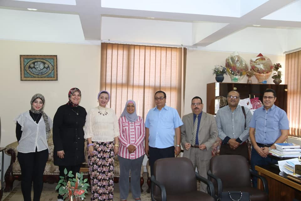 كما قامت اللجنه بزيارة مكتب السيدة أ. د مديحه درويش عميد الكلية وقد اشادت اللجنه بالبنية الالكترونية للكلية والاستعدادات التى قامت بها ادارة الكلية تحت رعاية سيادتها