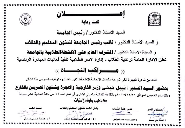 اعلان : تنفيذ المبادرة الرئاسية مراكب النجاة للحد من ظاهرة الهجرة غير المشروعة