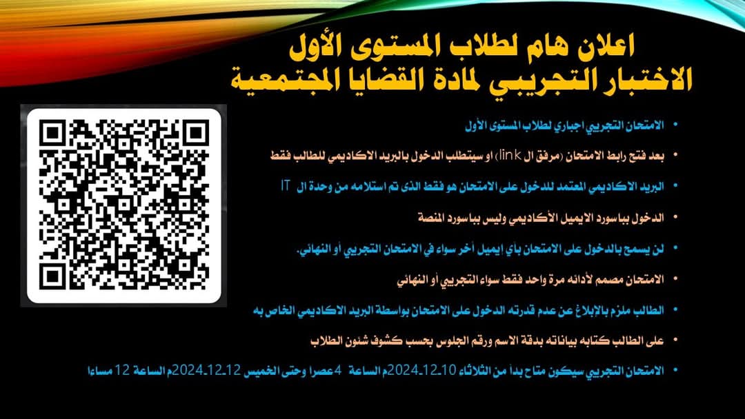 سيتم مناقشة رسالة الماجستير المقدمة من