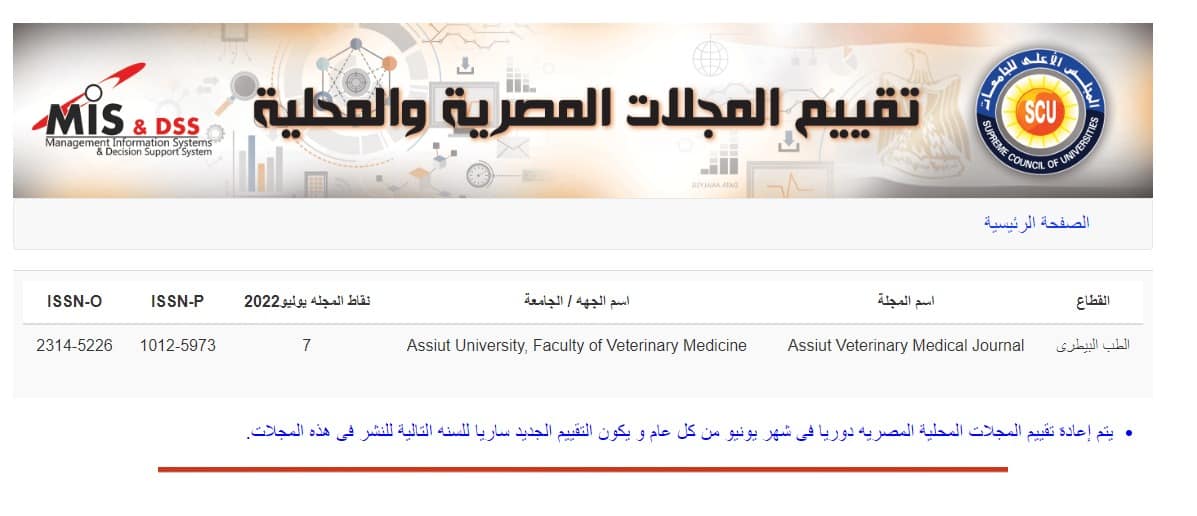 The Scientific Journal of the Faculty of Veterinary Medicine, Assiut University obtained 7/7 7 يوليو 2022 تعيين السيد الدكتور/ أحمد محمد كمال السيد يوسف فى وظيفة أستاذ مساعد فى الكيمياء تخصص"كيمياء تحليلية" بقسم الكيمياء بكلية العلوم بالجامعة