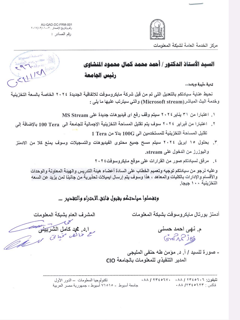 تعديل اتفاقية Microsoft Stream بين جامعة أسيوط وشركة ميكروسوفت 28 يناير 2024 الإحتفال بيوم العلوم وحفل خريجين الدفعة 55
