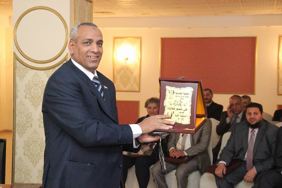 تكريم السيد أ.د/ حسن عباس محمد .. عميد الكلية أثناء فعاليات معرض اجريفيتا المنيا 2016،لمستلزمات ومعدات الدواجن والماشية والأعلاف والأدوية البيطرية تحت رعاية الدكتور عصام فايد وزير الزراعة، واللواء طارق نصر محافظ المنيا .
