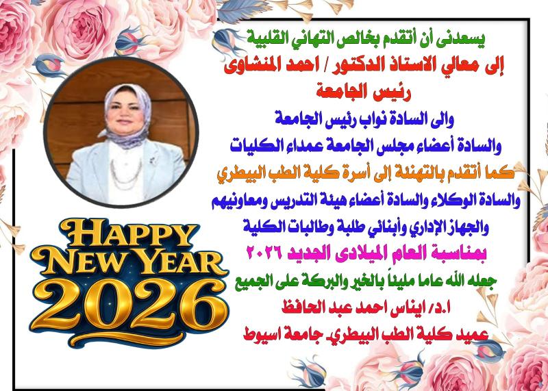 تتقدم ا.د عميد الكلية بخالص التهاني القلبية بمناسبة العام الميلادى الجديد 2026