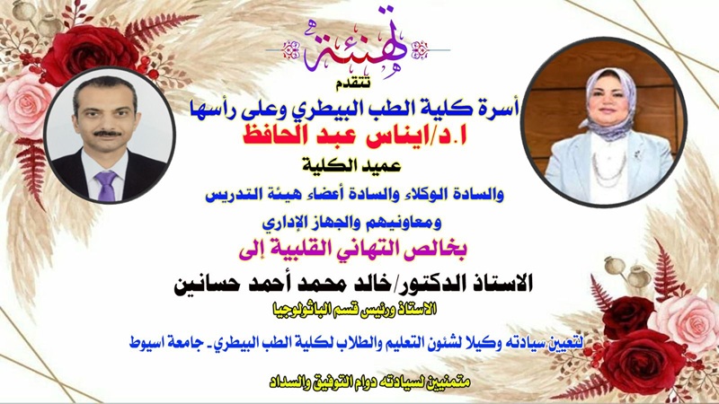 تهنئة : تعيين ا.د/ خالد محمد احمد حسانين وكيلا للكلية لشئون التعليم والطلاب