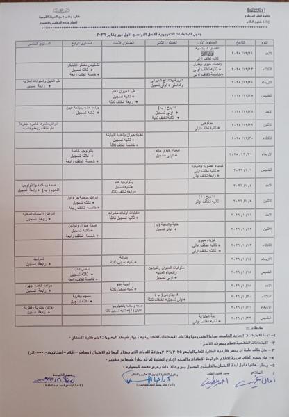 جداول امتحانات الفصل الدراسي الاول التحريرية للعام الجامعى 2025-2026
