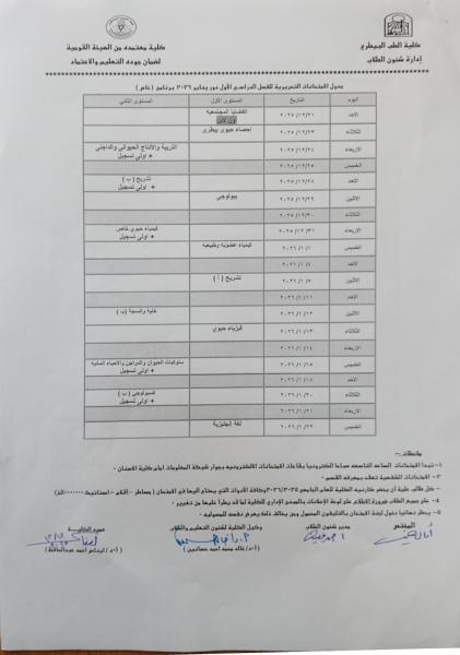 جداول امتحانات الفصل الدراسي الاول (برنامج خاص ) للعام الجامعى 2025-2026