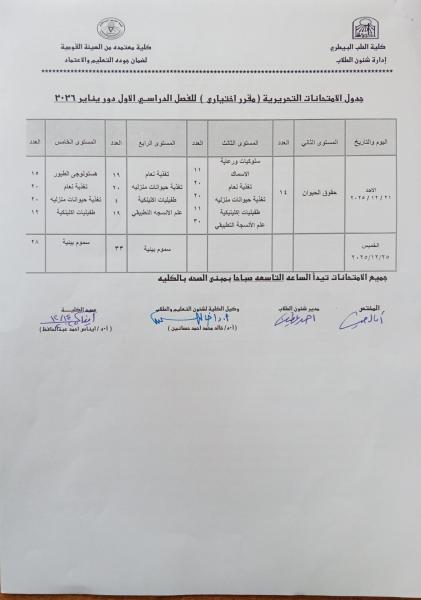 جداول امتحانات الفصل الدراسي الاول (المقررات الاختيارية ) للعام الجامعى 2025-2026