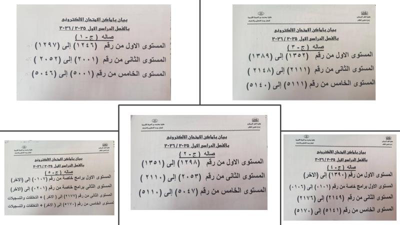 بيان بأماكن الامتحانات الإلكترونية قاعات ج