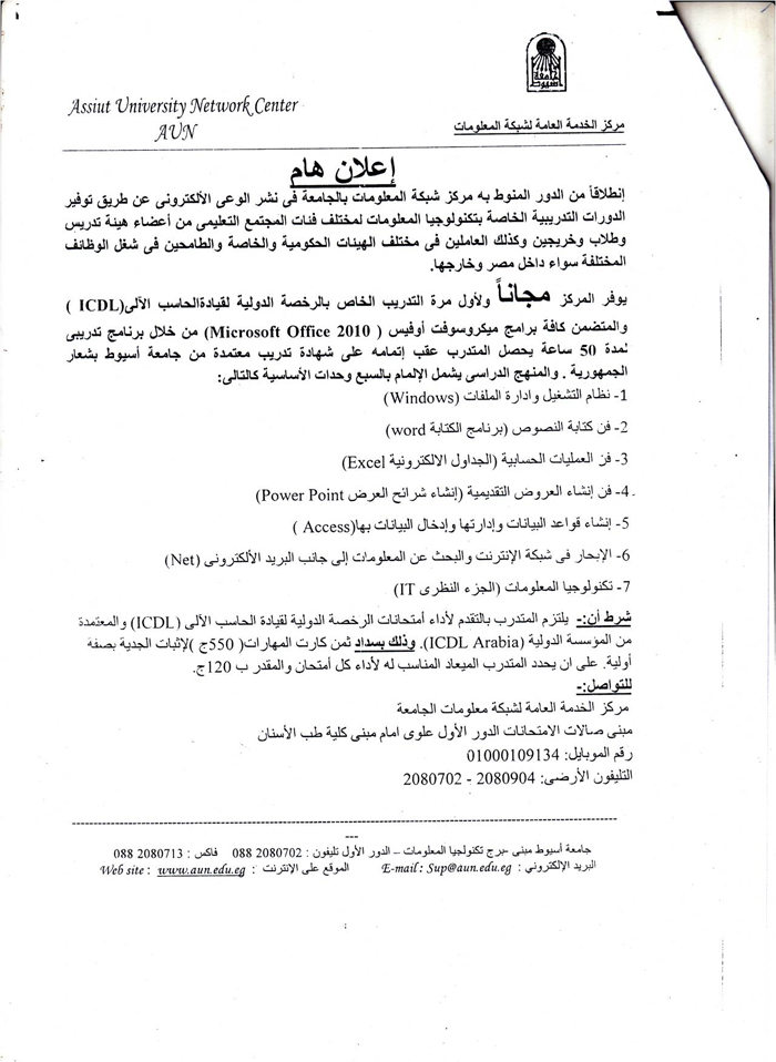 Announcement of free training for the International Computer Driving License 4 September 2018 Announcement of free training for the International Computer Driving License