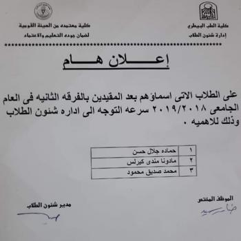 تتقدم أسرة الكلية وعلى رأسها السيدة أ.د. مديحة درويش عميد الكلية بخالص العزاء والمواساة إلى السيد الأستاذ الدكتور / علاء زين العابدين رئيس قسم الولادة والتناسليات بكلية الطب البيطرى جامعة سوهاج…