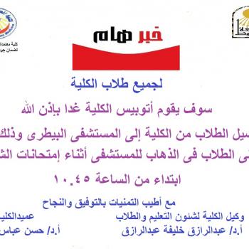 سوف يقوم أتوبيس الكلية غدا بإذن الله