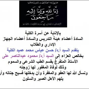 عزاء واجب للأستاذ الدكتور / محمود عبدالناصر على فى وفاة زوجته