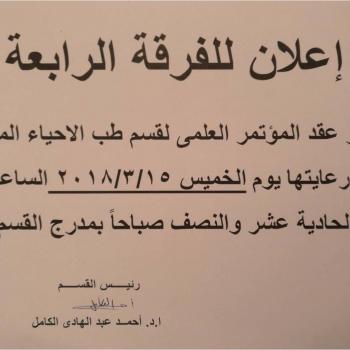 إعلان بخصوص موعد المؤتمر العلمى لقسم طب الأحياء المائية ورعايتها