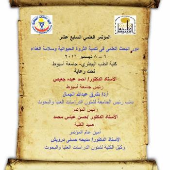 جامعة أسيوطكلية الطب البيطرى المؤتمر العلمي السابع عشر"دور البحث العلمى فى تنمية الثروة الحيوانية وسلامة الغذاء "http://www.aun.edu.eg/conferences/17vm/