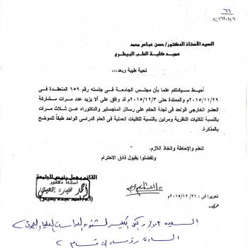 وكيل الكلية لشئون الدراسات العليا والبحوث