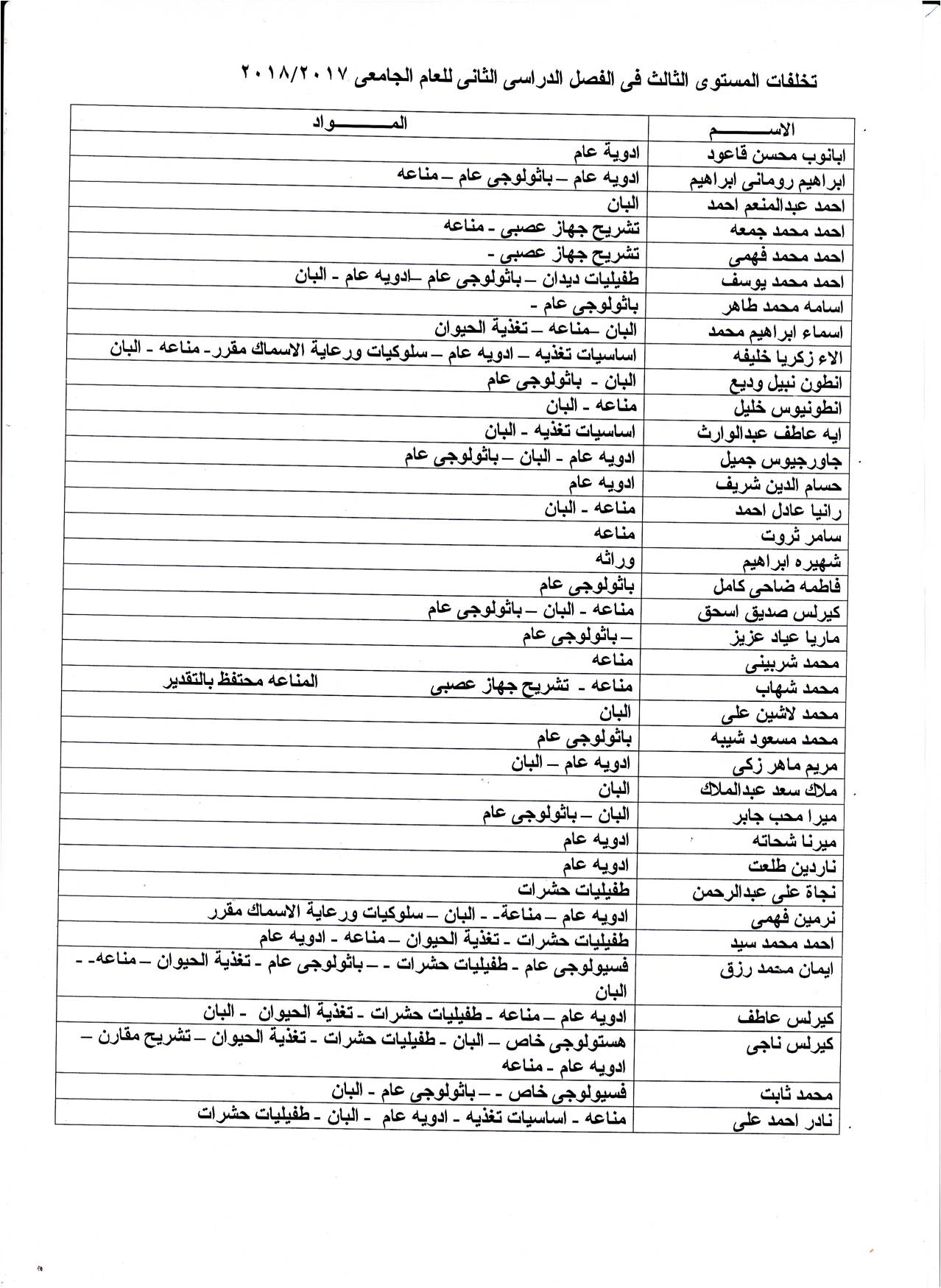 اسماء طلاب المستوى الثالث الذين عليهم اداء امتحانات تخلفات فى الفصل الدراسى الثانى 2017/2018 14 مارس 2018 اسماء طلاب المستوى الثالث الذين عليهم اداء امتحانات تخلفات فى الفصل الدراسى الثانى 2017/2018