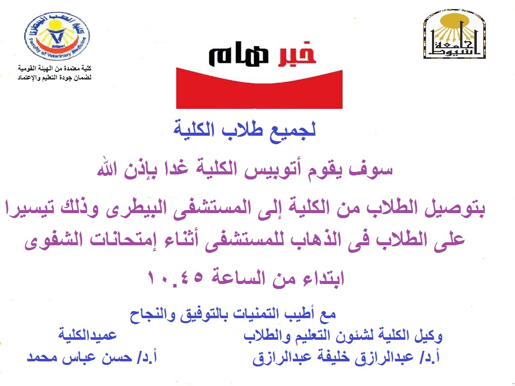 بتوصيل الطلاب من الكلية إلى المستشفى البيطرى لآداء إمتحانات الشفوى