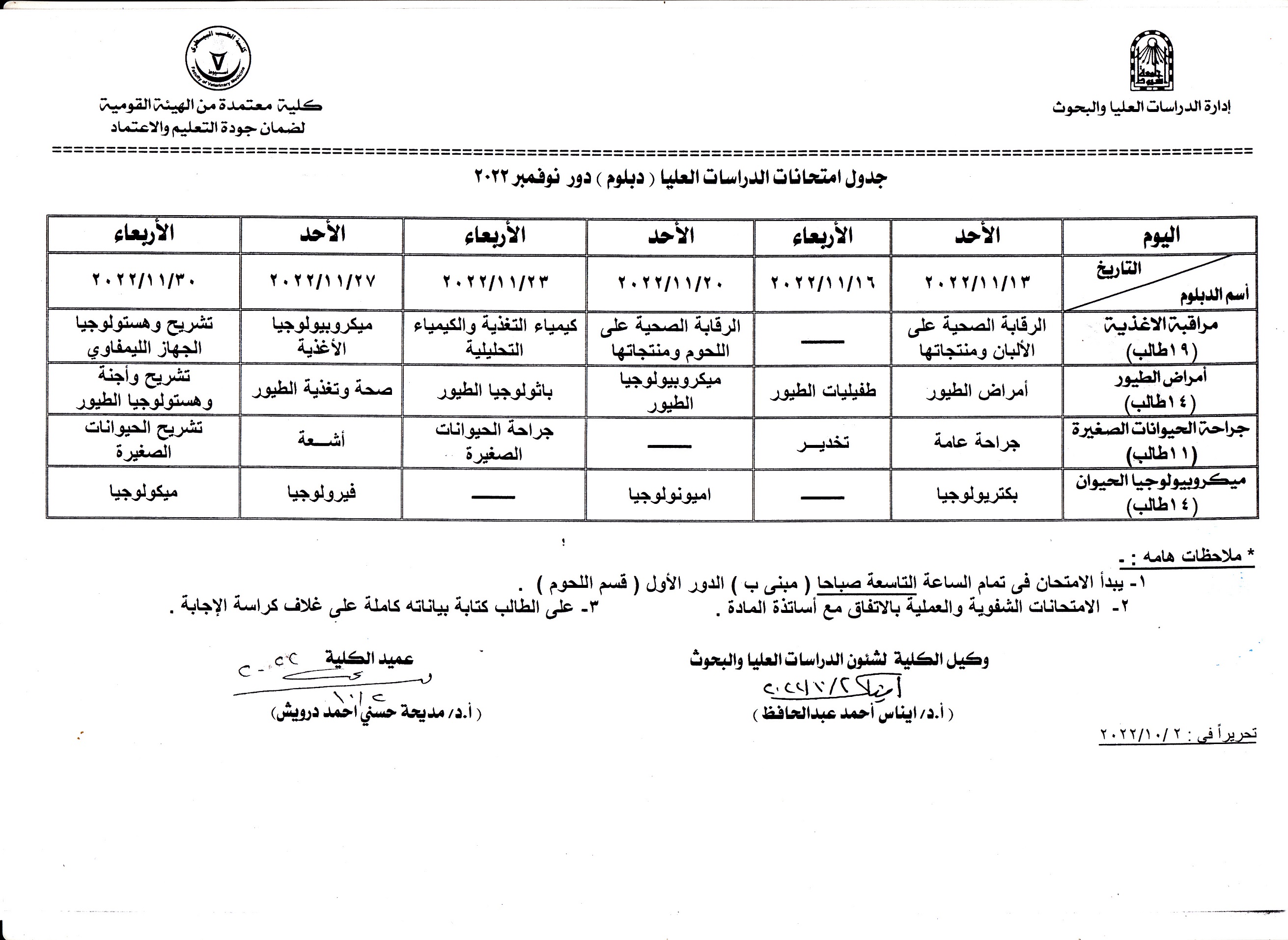 اختيار كلية الطب البيطري بجامعة أسيوط