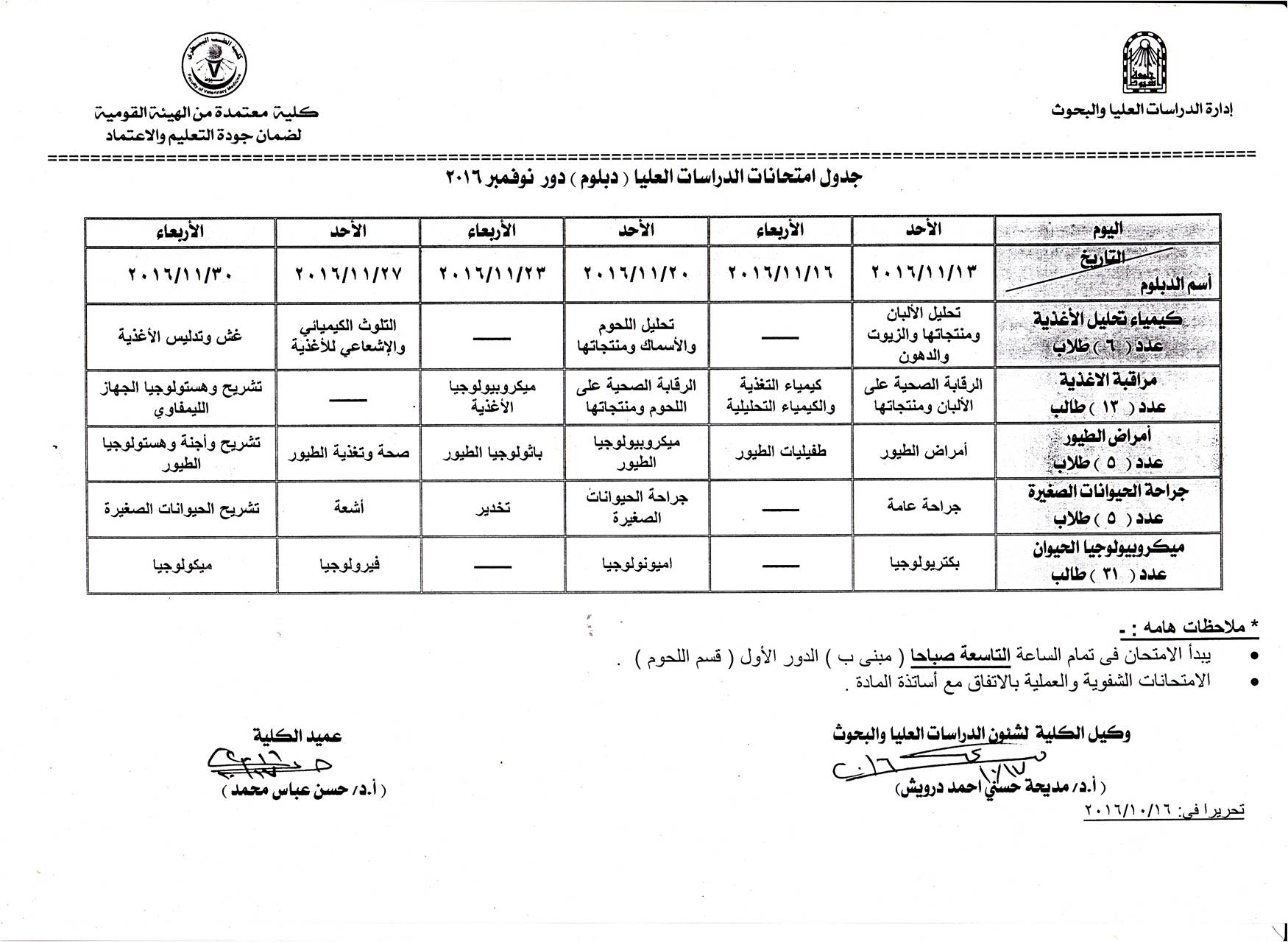 جدول امتحانات الدراسات العليا ( دبلوم ) دور نوفمبر 2016 19 أكتوبر 2016 جدول امتحانات الدراسات العليا ( دبلوم ) دور نوفمبر 2016