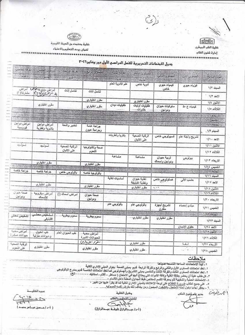 جدول أمتحانات الفصل الدراسى الأول لكلية الطب البيطري - جامعة أسيوط 23 ديسمبر 2015 جدول أمتحانات الفصل الدراسى الأول لكلية الطب البيطري - جامعة أسيوط