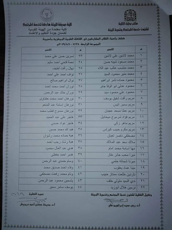كشف بأسماء المجموعة الرابعة من القوافل الطبية البيطرية 16 يونيو 2019 كشف بأسماء المجموعة الرابعة من القوافل الطبية البيطرية