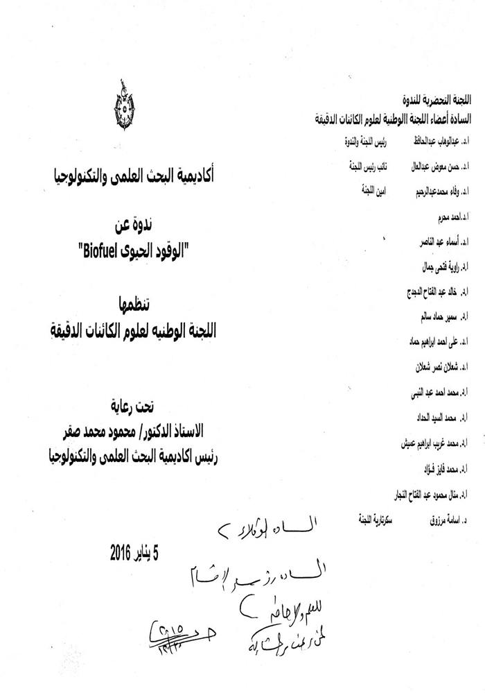 ندوة من أكاديمية البحث العلمى والتكنولوجيا عن الوقود الحيوى 31 ديسمبر 2015 ندوة من أكاديمية البحث العلمى والتكنولوجيا عن الوقود الحيوى
