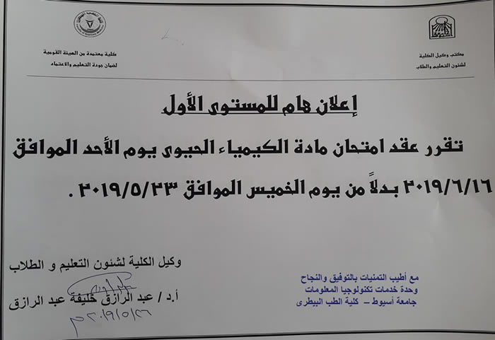 اختيار كلية الطب البيطري بجامعة أسيوط