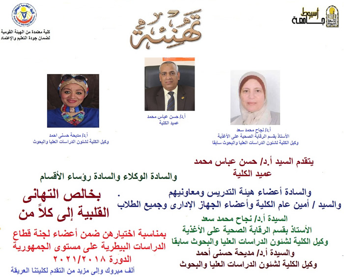 تهنئة للدكتورة / نجاح محمد سعد والدكتورة / مديحة حسنى درويش 18 نوفمبر 2018 تهنئة للدكتورة / نجاح محمد سعد والدكتورة / مديحة حسنى درويش