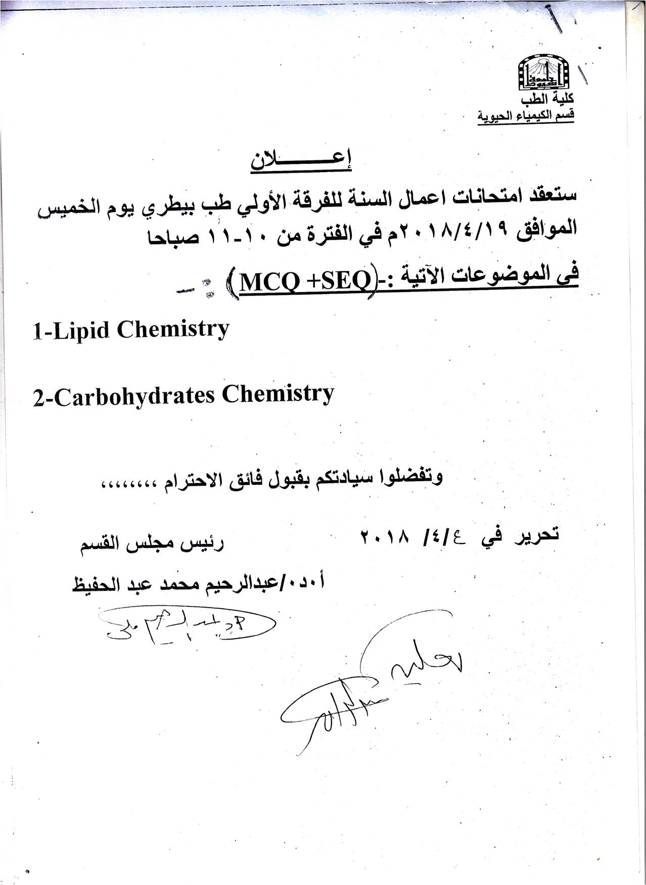 خاص بامتحان الكيمياء الحيوية للمستوى لأول