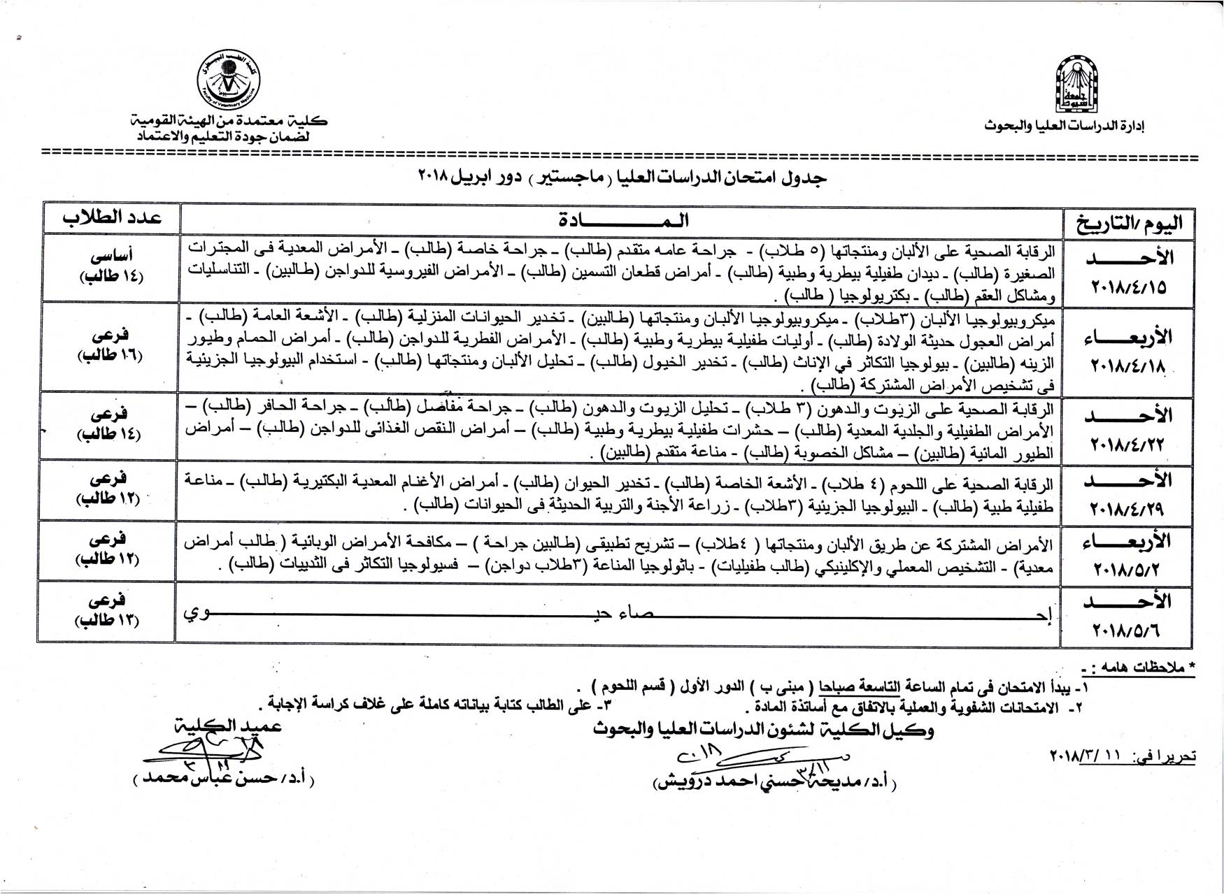 جداول امتحانات الدراسات العليا ( ماجستير ) دور ابريل 2018 15 مارس 2018 جداول امتحانات الدراسات العليا ( ماجستير ) دور ابريل 2018