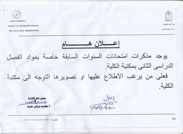 إعلان هام لجميع الطلاب بخصوص مذكرات الإمتحانات السابقة 6 مارس 2018 إعلان هام لجميع الطلاب بخصوص مذكرات الإمتحانات السابقة
