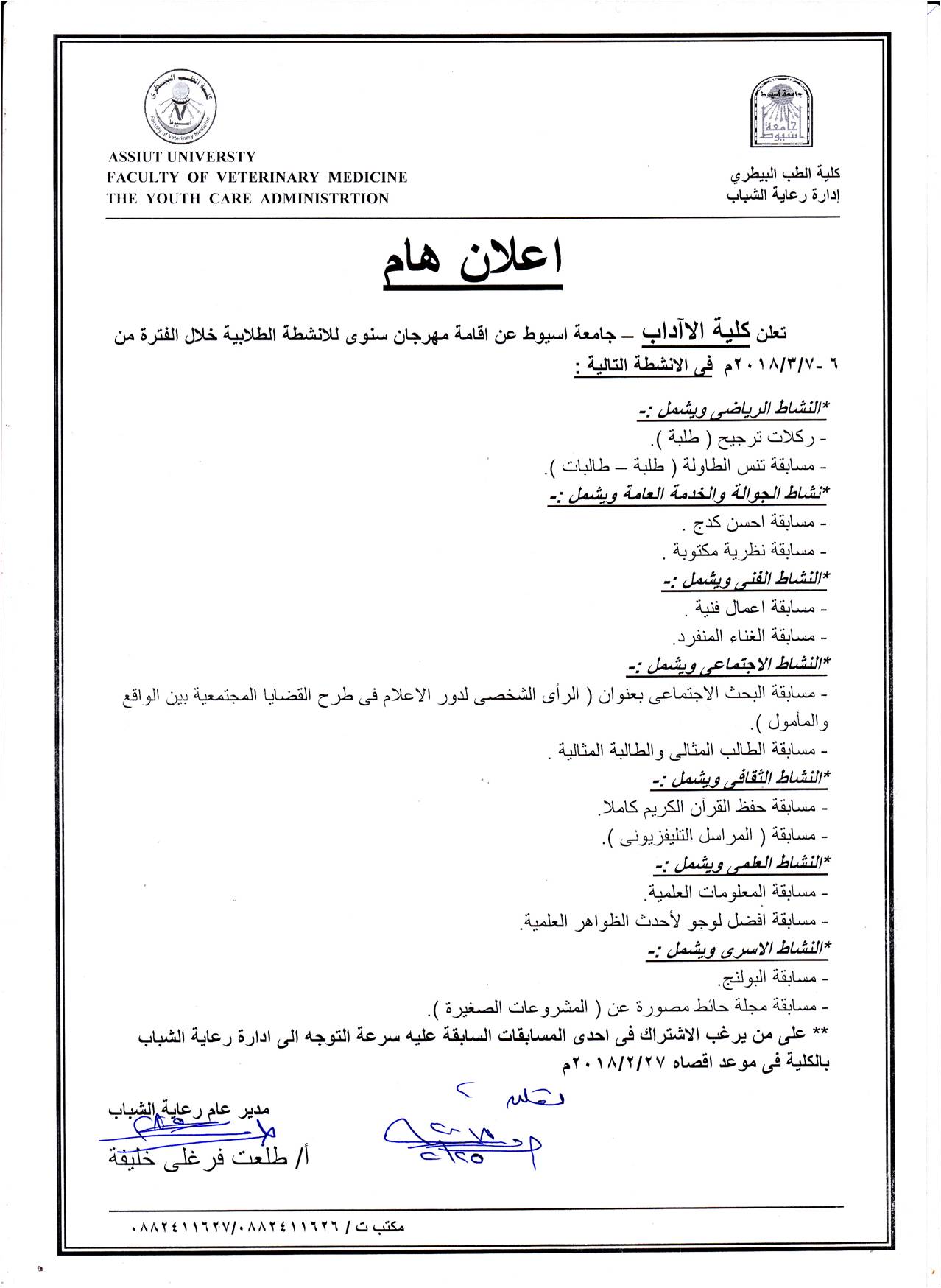 مهرجان سنوى للأنشطة الطلابية بكلية الآداب