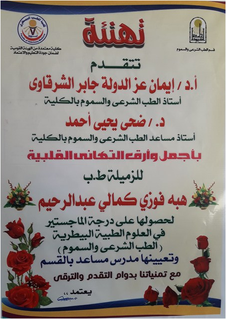 تهنئة من السيدة أ.د/ ايمان عز الدولة