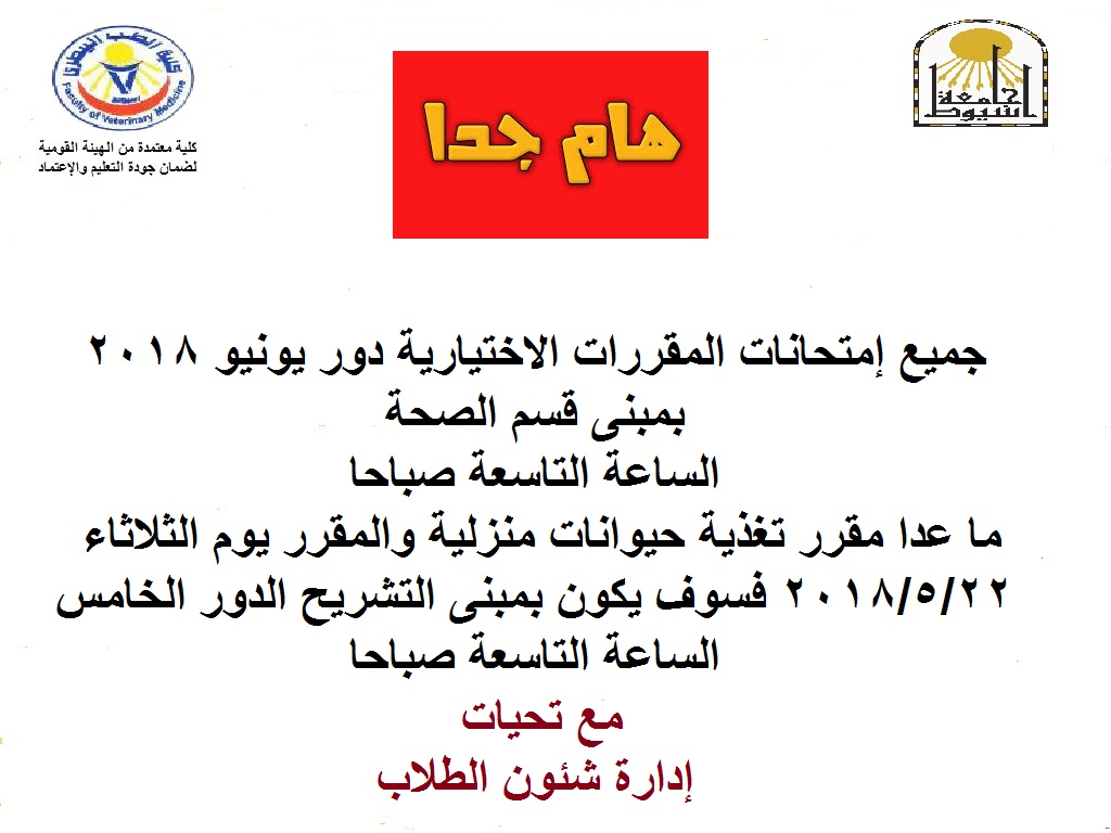 هل لديك سؤال ؟(088) 2352334 - 2411600.vet_med_dean@aun.edu.eg