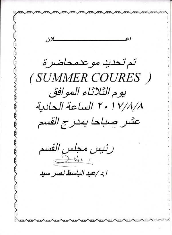 Important Notice Regarding Summer Course