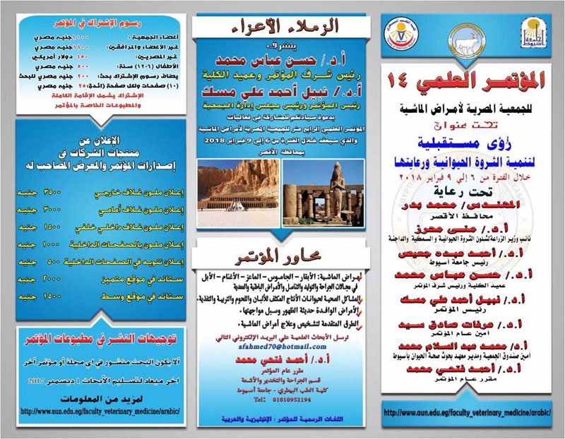 The 14th Scientific Conference of the Egyptian Society of Animal Diseases, which will be held from February 6 to 9, 2018 Luxor Governorate