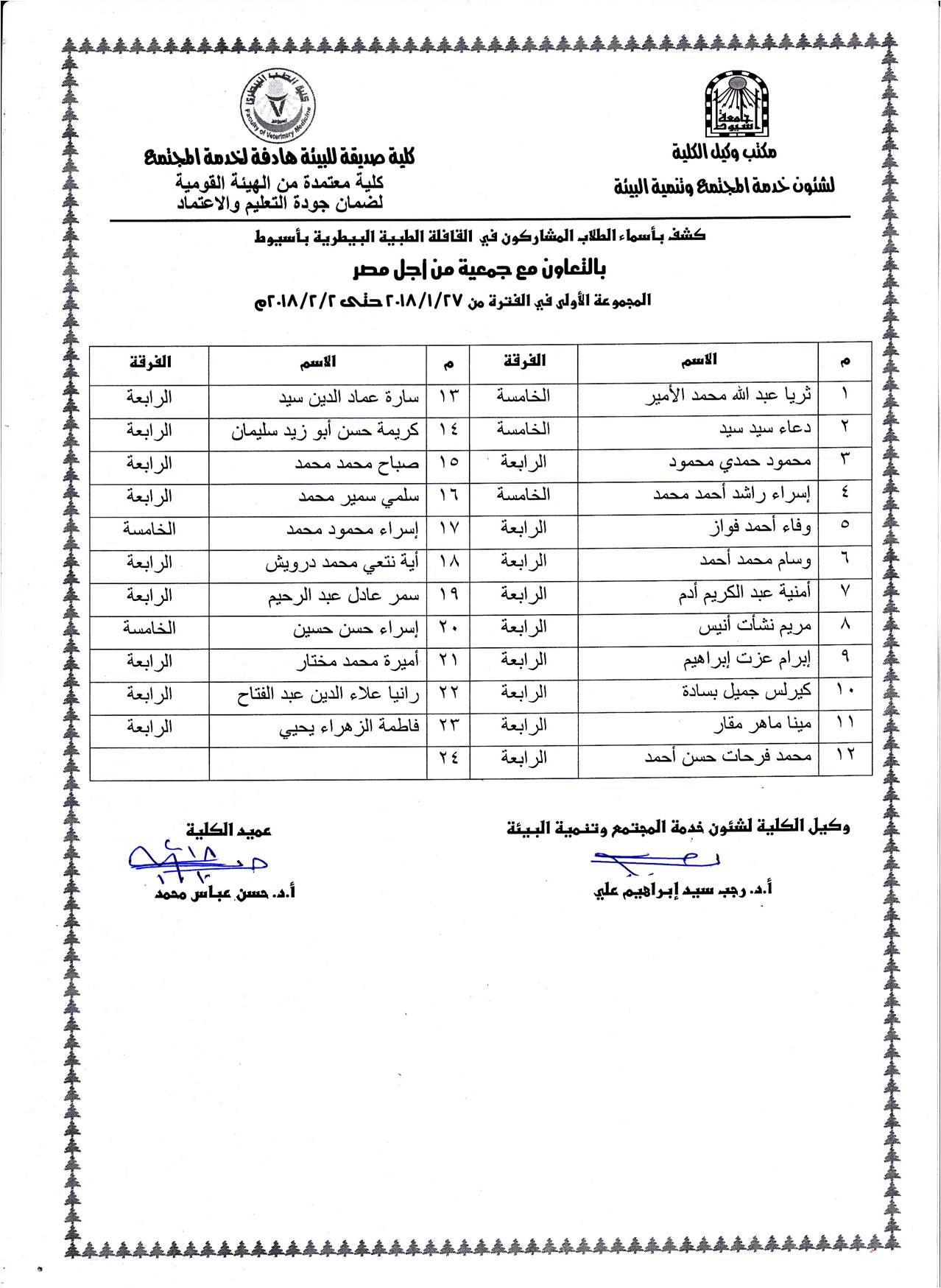 Names of students participating in the veterinary medical convoy in cooperation with the Association for Egypt 10 January 2018 Names of students participating in the veterinary medical convoy in cooperation with the Association for Egypt