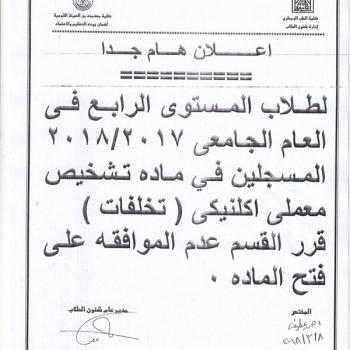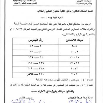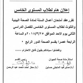 Announcement of the date of the practical examination of the fifth level environmental health and pollution
