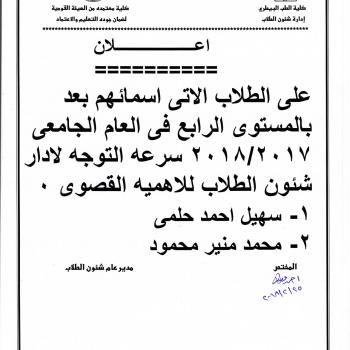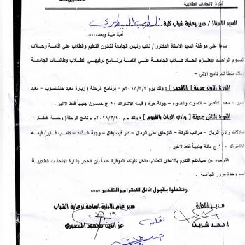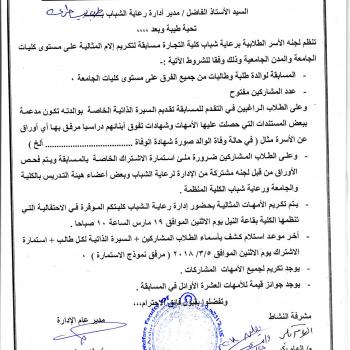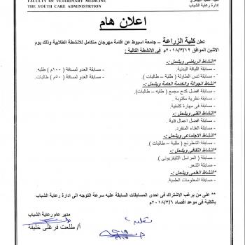 Declaration of the Faculty of Agriculture on the establishment of an integrated festival of student activities on Monday 12/3/2018