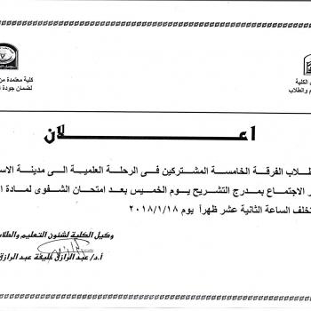 Announcement No. 2 for students participating in the Alexandria trip - Level 5