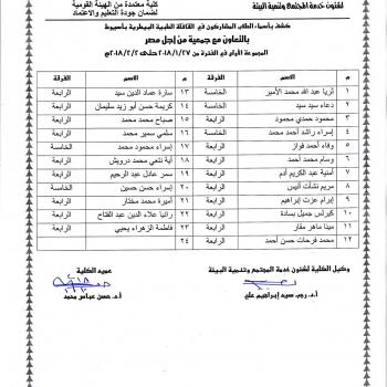 Names of students participating in the veterinary medical convoy in cooperation with the Association for Egypt
