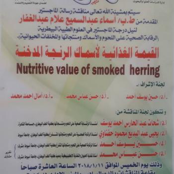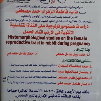 Discussing the PhD thesis presented by Dr. Fatima Al-Zahraa Ahmed, Assistant Lecturer, Department of Anatomy, Faculty