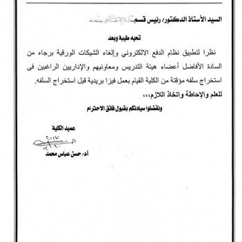 Application of electronic payment system and cancellation of paper checks Due to the application of electronic payment system and the cancellation of paper checksKindly thank the faculty members,…