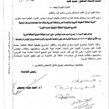 Symposium on the importance of clean and renewable energy for Egypt and the Arab region and proposals for universities Research centers for clean energy-specific energy projects)