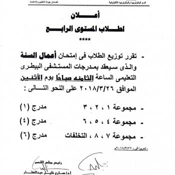 Schedule of editorial examinations for the second semester June 2018Nassharday Thursday 22/3/2018