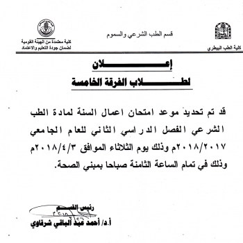 An important announcement for the fifth level students of the year's Business examination in infectious diseases